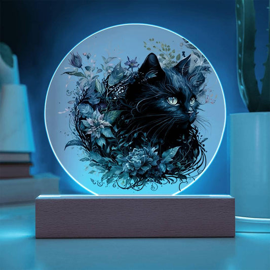 Halloween Charm: Enchanted Black Cat Acrylic Plaque