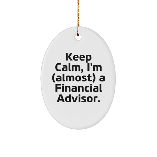 Funny Financial Advisor Gifts for Christmas - Oval Ornament with Quote 'Keep Calm, I'm (almost) A Financial Advisor.' - Gifts from Friends to Family