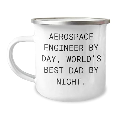 Aerospace Engineer Gifts for Him, Birthday Unique Mug for Aerospace Engineer By Day, World's Best Dad By Night. 12 oz Camping Mug with Enamel Finish (150-200 characters in total)