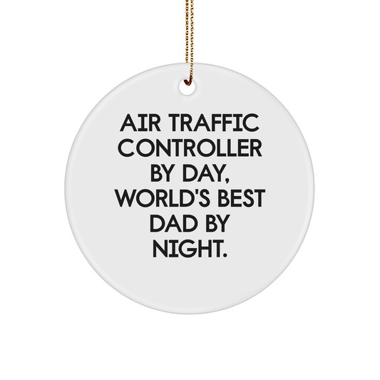 Air Traffic Controller Gifts, Funny Quote Circle Ornament, Christmas Unique Gifts for Men, Gifts from Dad, Air Traffic Controller By Day, World's Best Dad By Night.