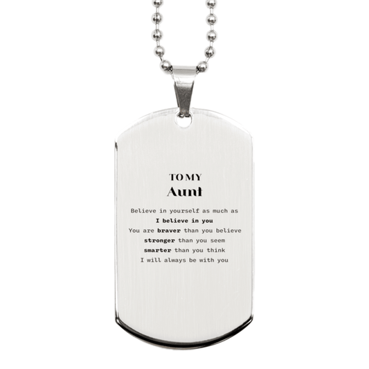Aunt Silver Dog Tag Gifts, To My Aunt You are braver than you believe, stronger than you seem, Inspirational Gifts For Aunt Engraved, Birthday, Christmas Gifts For Aunt Men Women