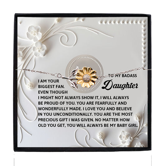 Badass Daughter Sunflower Bracelet – I Am Your Biggest Fan – Birthday, Graduation, Christmas Jewelry Gift From Parent
