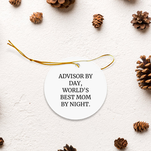 Advisor Gifts from Friends and Family - 'Advisor By Day, World's Best Mom By Night.' Christmas Circle Ornament, White