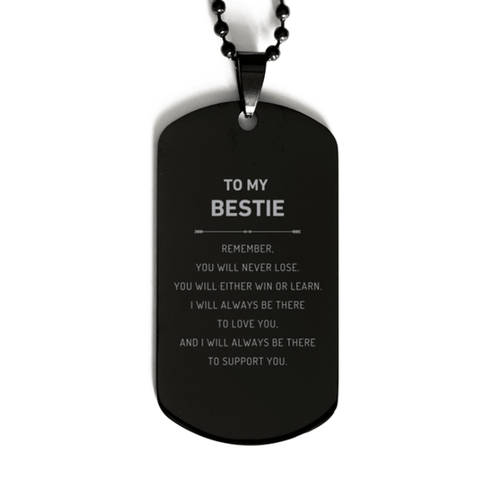 Bestie Gifts, To My Bestie Remember, you will never lose. You will either WIN or LEARN, Keepsake Black Dog Tag For Bestie Engraved, Birthday Christmas Gifts Ideas For Bestie X-mas Gifts