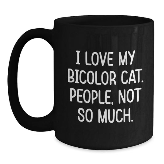 Bicolor Cat Lover Gifts, Funny Quote Coffee Mug for Friends, Family, Coworkers, 'I Love My Bicolor Cat. People, Not So Much.'