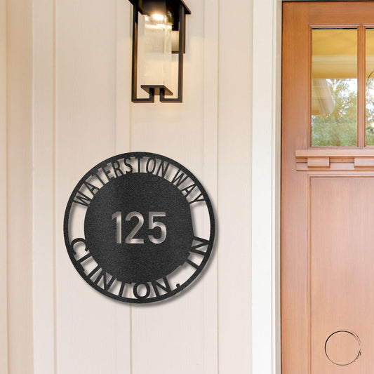 Bold Circle Address Personalized Front Door, Porch, Patio Steel Wall Sign Metal Art
