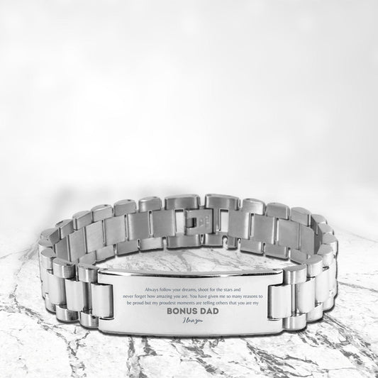 Bonus Dad Engraved Ladder Stainless Steel Bracelet Always follow your dreams, never forget how amazing you are, Birthday Christmas Gifts Jewelry
