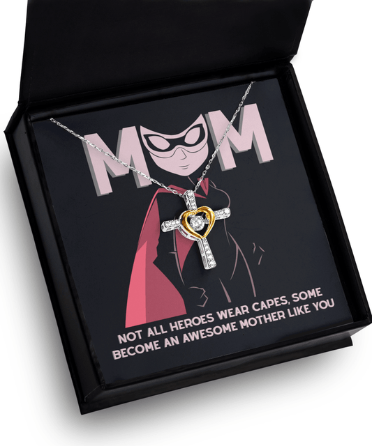 Gift for Mom Not All Heroes Wear Capes, Some Become Awesome Mothers Cross Pendant Necklace