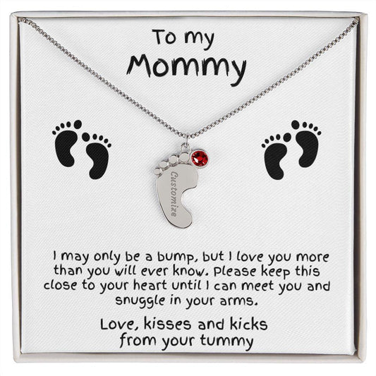 Gift for New Mom Kisses and Kicks from Baby Bump Engraved Name Baby Feet Pendant Necklace with Birthstone