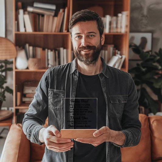 Bonus Dad You Chose to Love Me Personalized Acrylic Square Plaque with LED Wooden Base