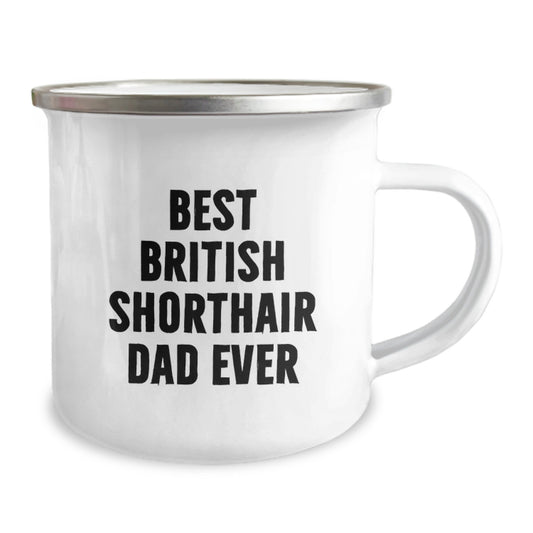 British Shorthair Cat Dad Gifts from Family for Men, Unique Camping Mug for Graduation, 'Best British Shorthair Dad Ever' Quote, 12 oz Stainless Steel with Enamel Finish