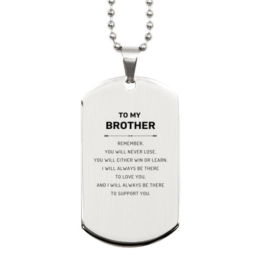 Brother Gifts, To My Brother Remember, you will never lose. You will either WIN or LEARN, Keepsake Silver Dog Tag For Brother Engraved, Birthday Christmas Gifts Ideas For Brother X-mas Gifts
