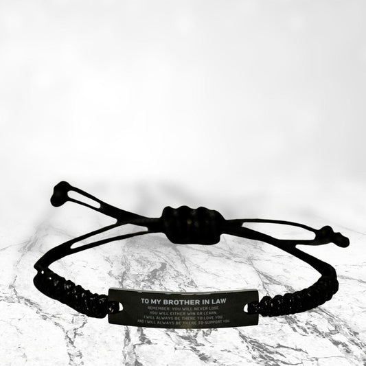 Brother-In-Law Gifts, Remember, you will never lose. You will either WIN or LEARN, Keepsake Black Rope Bracelet Engraved, Birthday Christmas Gifts Ideas