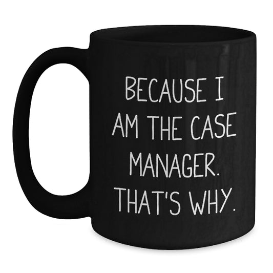 Case Manager Gifts from Friends - Funny Black Coffee Mug for Graduation, Because I Am The Case Manager. That's Why., Unique Gift for Him or Her