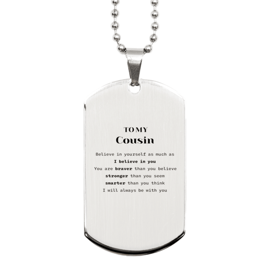 Cousin Silver Dog Tag Gifts, To My Cousin You are braver than you believe, stronger than you seem, Inspirational Gifts For Cousin Engraved, Birthday, Christmas Gifts For Cousin Men Women