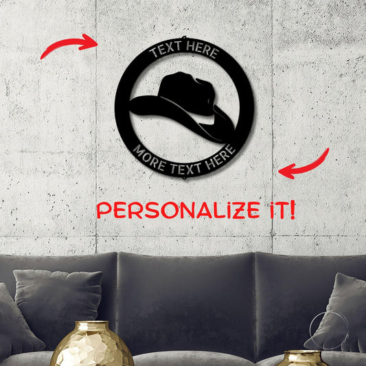 Cowboy Hat Personalized Name Indoor Outdoor Steel Wall Sign Metal Art