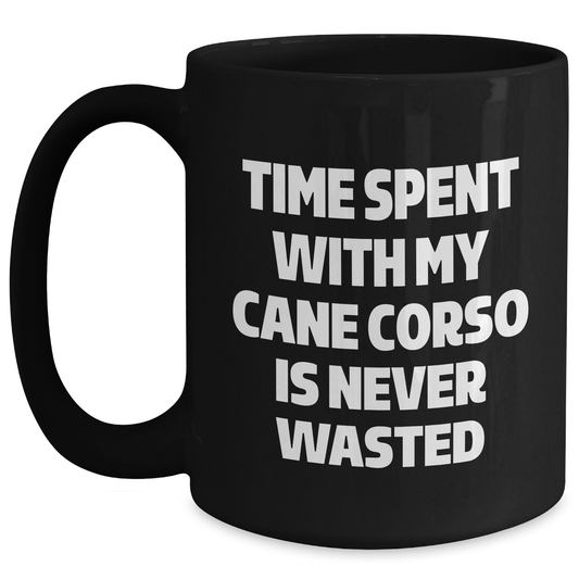 Cute Cane Corso Dog Gifts - Time Spent With My Cane Corso Is Never Wasted, Funny Quote on Black Coffee Mug, Perfect for Father's Day Unique Gifts from Men or Family - Gifts for Cane Corso Dog Lovers