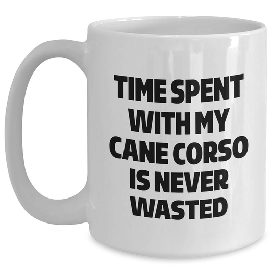 Cute Cane Corso Dog Gifts from Friends, Unique White Coffee Mug with Time Spent with My Cane Corso Is Never Wasted, Perfect Father's Day Unique Gift for Men - 11oz or 15oz