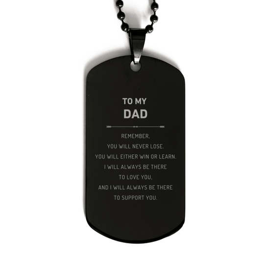 Dad Gifts, To My Dad Remember, you will never lose. You will either WIN or LEARN, Keepsake Black Dog Tag For Dad Engraved, Birthday Christmas Gifts Ideas For Dad X-mas Gifts