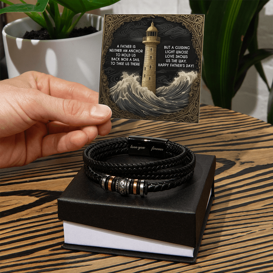 Dad Vegan Leather Bracelet Father's Day Gift - with Inspirational “Guiding Light” Lighthouse Message Card