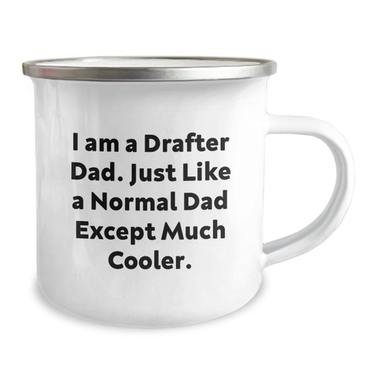 Drafter Dad Gifts for Him, Funny Camping Mugs, 'I Am A Drafter Dad' Unique Graduation Gifts from Men to Sons, 12 oz Stainless Steel with Enamel Finish