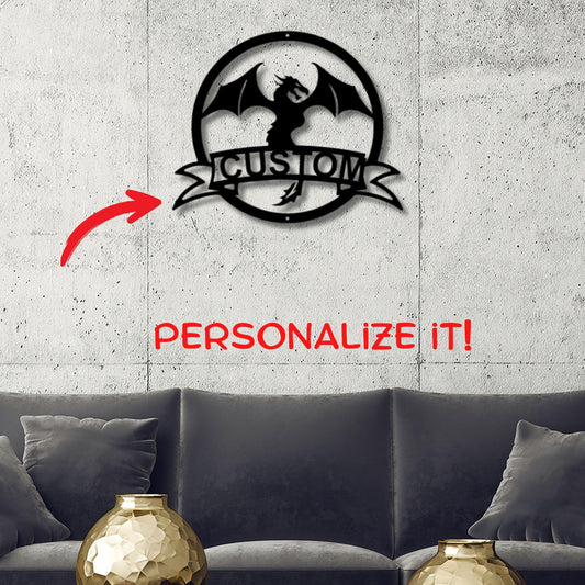 Dragon Banner Personalized Name Metal Art Wall Sign