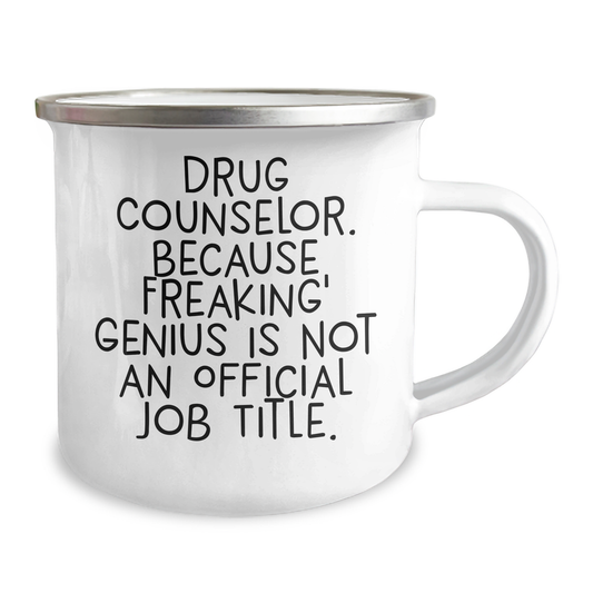 Drug Counselor Gifts, Funny Camping Mug, 'Drug Counselor. Because Freaking' genius Is Not An Official Job Title.' Quote, Unique Graduation Gifts from Friends, For Drug Counselor