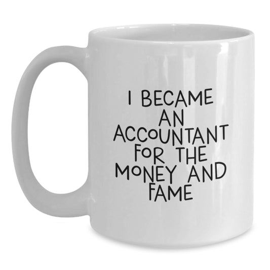 Funny Accountant Gifts for Men | White Coffee Mug - 'I Became An Accountant For The Money And Fame' | Unique Christmas Unique Gifts from Friends