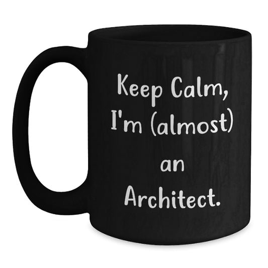 Architect Gifts for Him, Funny Black Coffee Mug with Keep Calm I'm almost An Architect Quote, Birthday Unique Gifts from Friends, Coworkers to Family Members