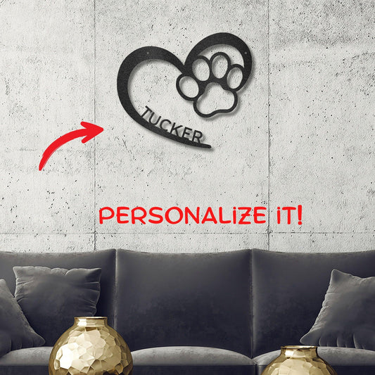 Puppy Love Paw Print Monogram Personalized Metal Art Wall Sign