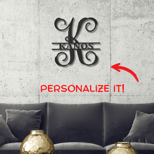 Split Letter Monogram Custom Name Indoor Outdoor Steel Wall Sign