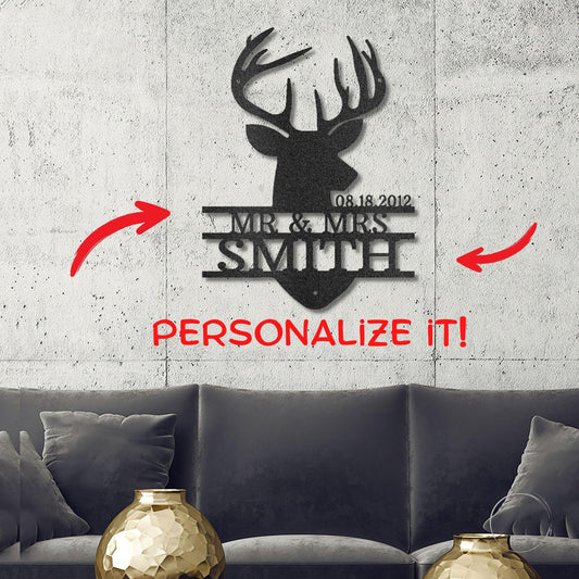 Deer Head Monogram Name Personalized Metal Art Wall Sign Wedding Anniversary