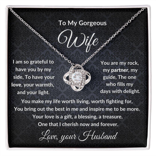 To My Gorgeous Wife - Your Love is a Treasure - Love Knot Necklace with Message Card and Gift Box