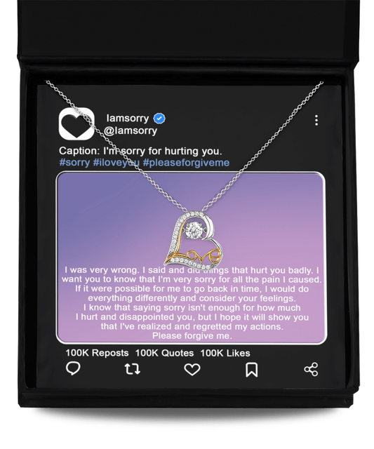 Apology Gift for Girlfriend, Wife, Soulmate - Sorry, Hurt You Badly - Love Heart Pendant Necklace