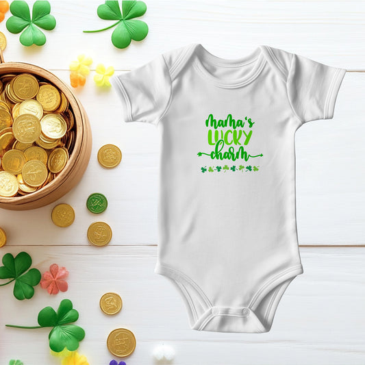 Mama’s Lucky Charm St. Patrick’s Day Baby Bodysuit – Cute Shamrock Onesie – Soft Cotton Infant Romper – Funny Irish Holiday Outfit & Baby Gift