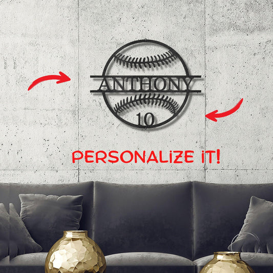 Baseball Gear Custom Name and Jersey Number Metal Wall Sign