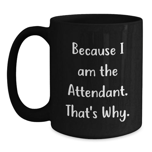 Funny Attendant Gifts for Him - Black Coffee Mug Because I Am The Attendant That's Why - Christmas Unique Gift