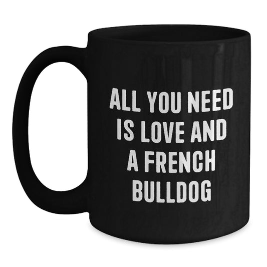 Funny French Bulldog Gifts - All You Need Is Love And A French Bulldog - Black Coffee Mug for French Bulldog Lovers, Birthday Unique Gift from Friends, Family or Coworkers, 11oz or 15oz