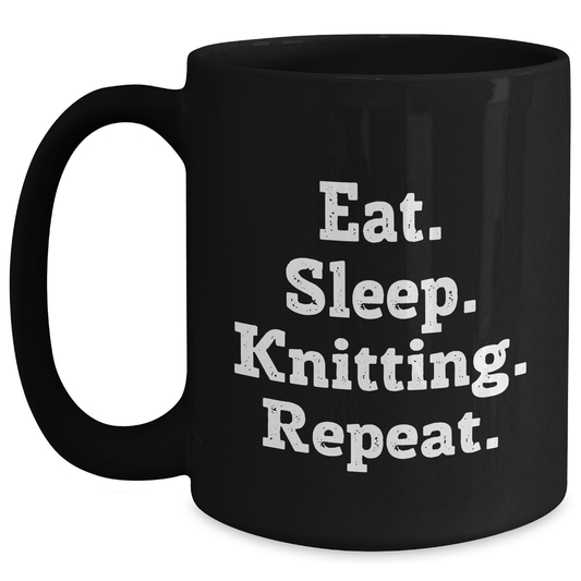 Funny Knitting Gifts from Family, Friends, or Coworkers - Eat. Sleep. Knitting. Repeat. Black Coffee Mug for Knitting Enthusiasts, Unique Father's Day Unique Gifts for Men