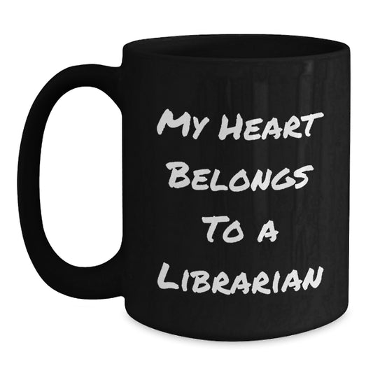 Funny Librarian Quotes Gifts from Friends for Librarian Christmas Unique Mug - My Heart Belongs To A Librarian Black Coffee Mug