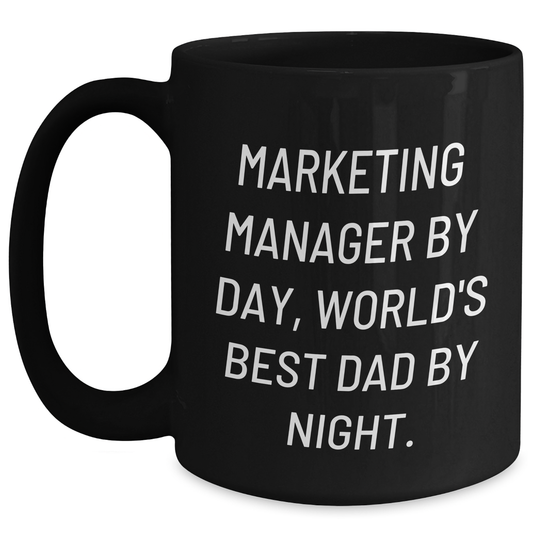 Marketing Manager Humor Gifts By Day, Dad By Night Funny Black Coffee Mug, Perfect for Marketing Manager Gifts on Father's Day