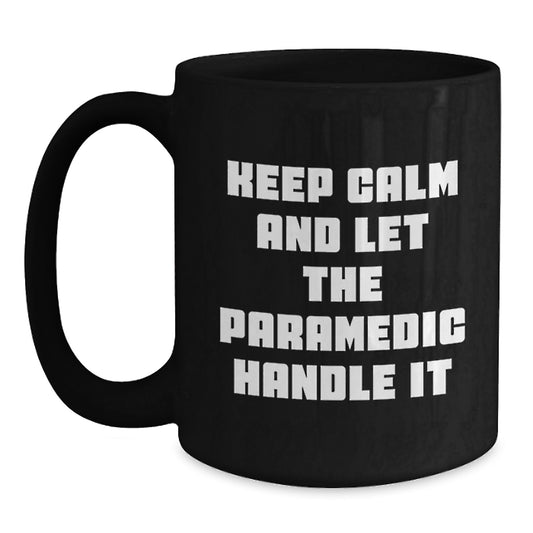 Funny Paramedic Gifts Christmas Unique Black Coffee Mugs with 'Keep Calm And Let The Paramedic Handle It' Quote