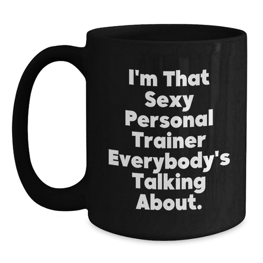 Funny Gift Ideas for Personal Trainer Men by Sexy Personal Trainer, Black Coffee Mug for Christmas Unique Gifts from Friends to Family