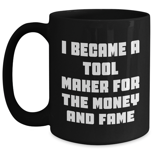 Funny Tool Maker Gifts from Men to Friends for Mother's Day - Black Coffee Mug, 'I Became A Tool Maker For The Money And Fame'