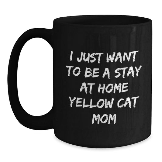Funny Yellow Cat Gifts for Birthday, I Just Want To Be A Stay At Home Yellow Cat Mom Quote, Black Coffee Mug Gifts from Family to Friends