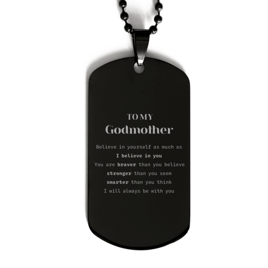 Godmother Black Dog Tag Engraved Necklace - You are braver than you believe, stronger than you seem, Inspirational Birthday Christmas Mother's Day Gifts