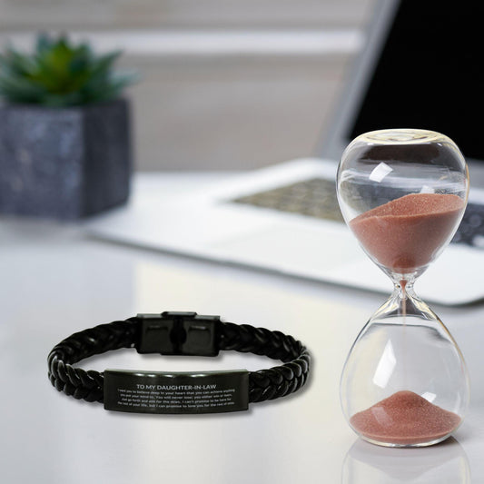 Motivational Daughter-in-law Braided Leather Engraved Bracelet, I can promise to love you for the rest of mine, Birthday Jewelry Gift for Women