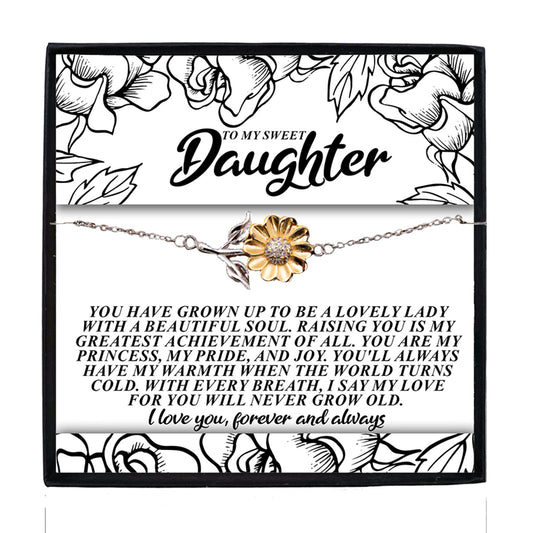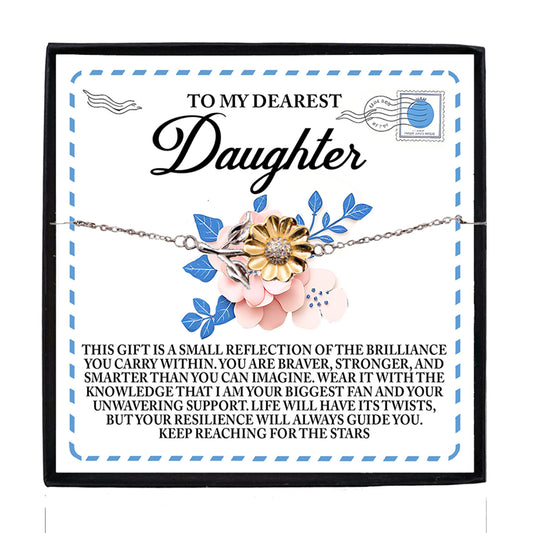 To My Dearest Daughter – Keep Reaching for the Stars - Sunflower Bracelet Gift with Message Card