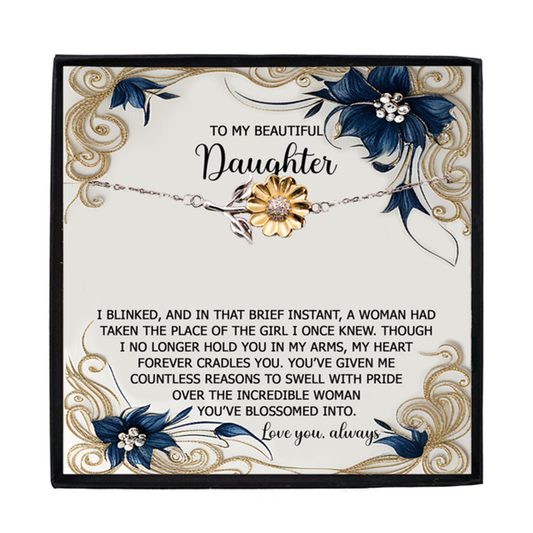 To My Daughter – You Are My Heart, My Soul, My Joy – Timeless Sunflower Bracelet Gift with Loving Message