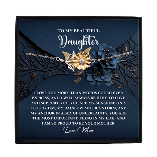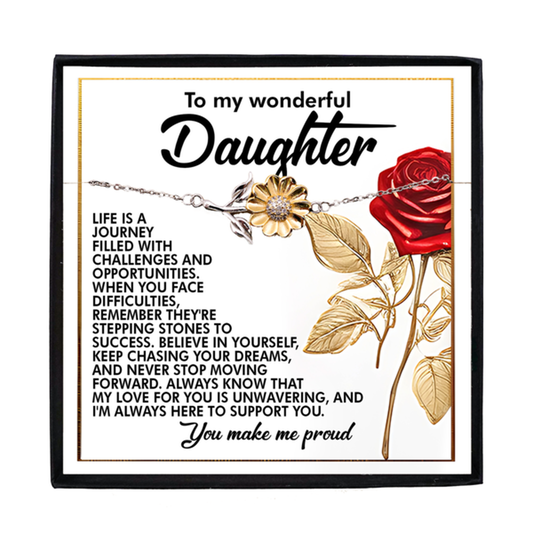 To My Wonderful Daughter – You Make Me Proud – Motivational Sunflower Bracelet Gift with Message of Love and Support